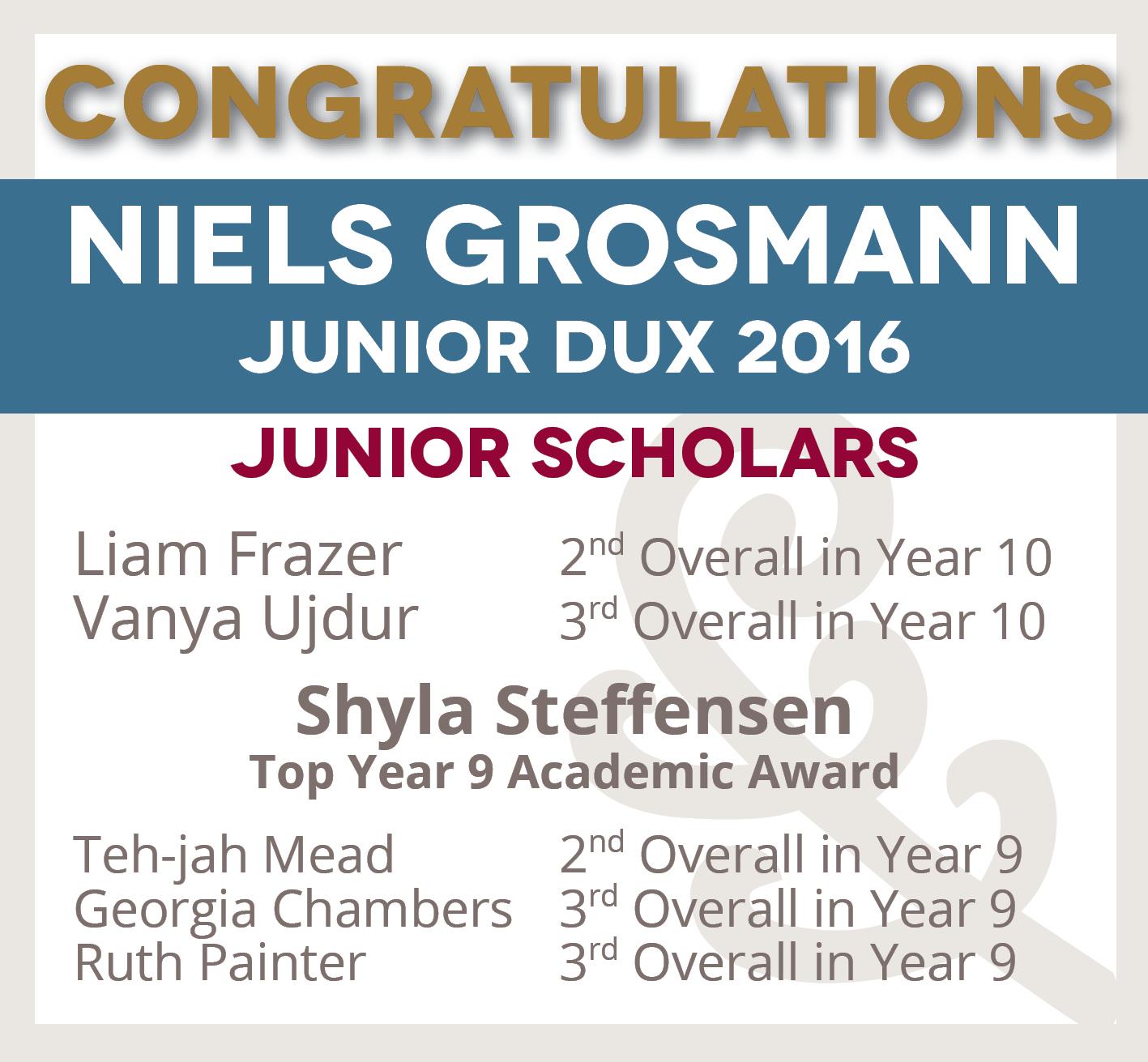 A special acknowledgement goes to Niels Grosmann for receiving the Junior Dux award.